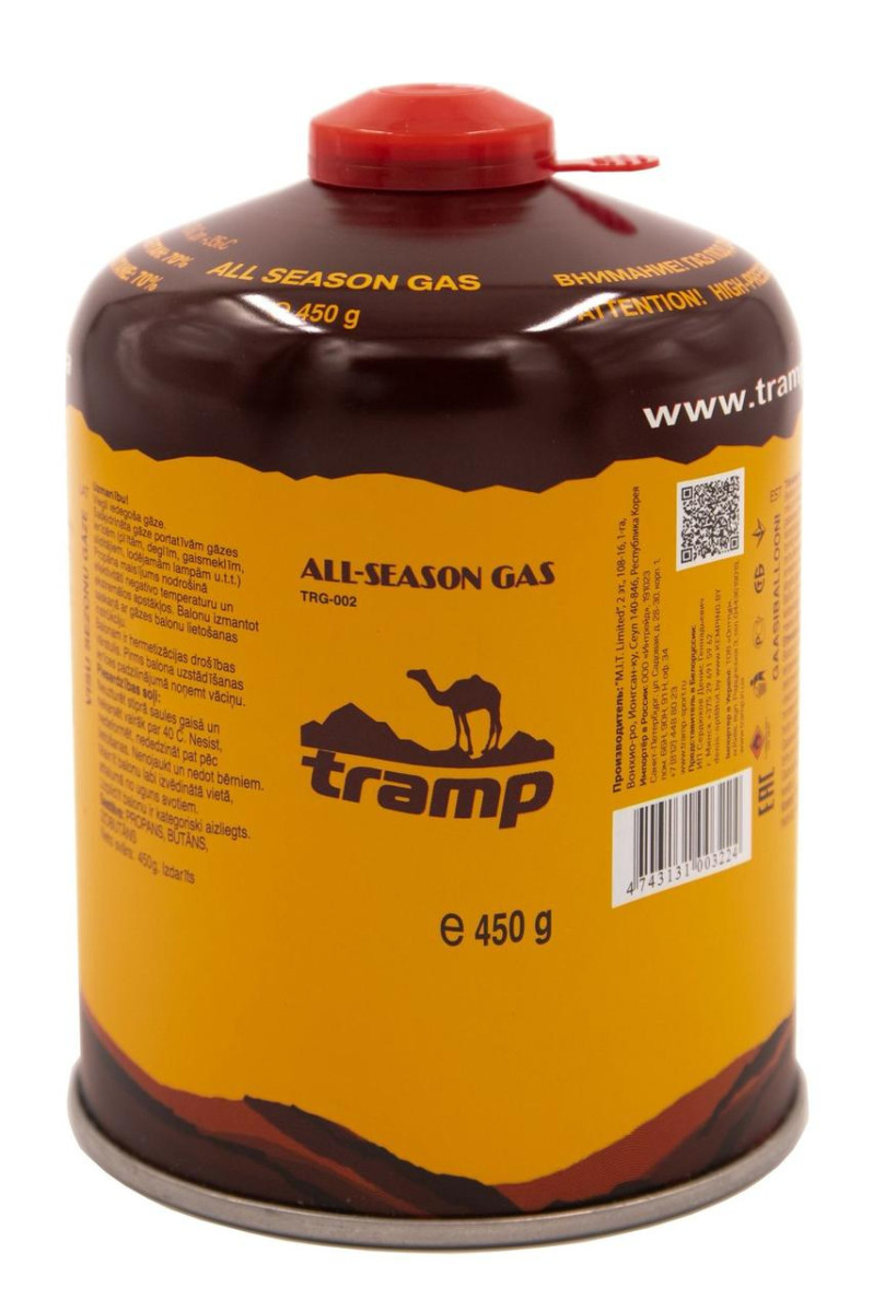 Баллон газовый Tramp (резьбовой) TRG-002 450 г. Газовый баллон резьбового (Epi-gas) типа. Может использоваться при температуре от -23 до + 35 °С.
