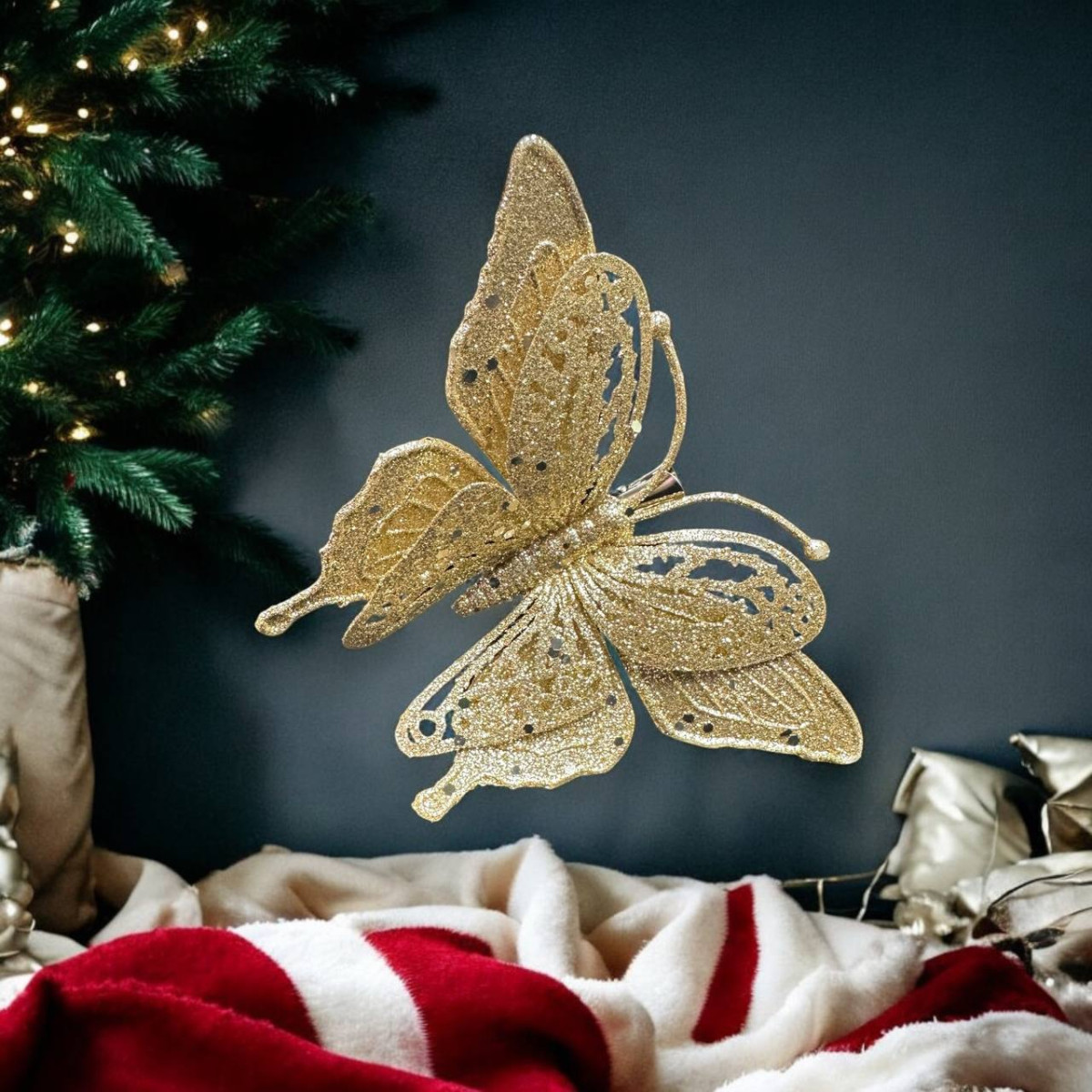 Игрушка на елку Бабочка 14696 17 см золотистая