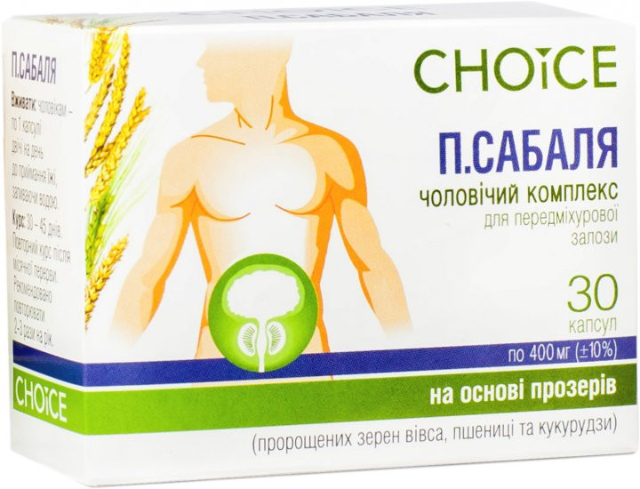 Мужской комплекс Choice П.Сабаля 99100019101 нормализует функцию предстательной железы. Поддерживает нормальную работу мочевыделительной системы. Предупреждает патологические изменения предстательной железы. Оказывает противовоспалительное воздействие.