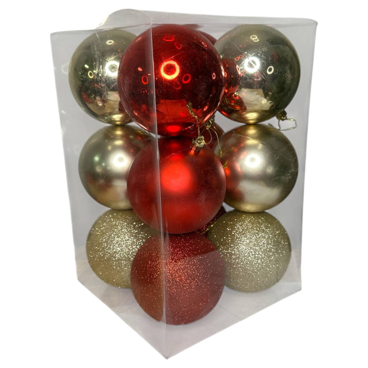 Набор игрушек на елку 19887 10 см 12 шт шампань с красным