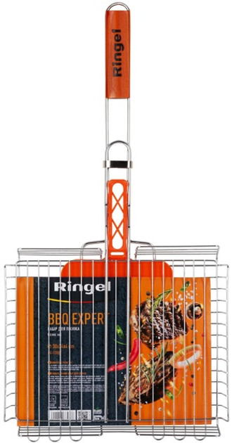 Решетка для грилля Ringel Bbq Expert RG- это серия универсальных, высококачественных аксессуаров для приготовления вкусных блюд на свежем воздухе. В набор Bbq Expert входит решетка для гриля и веер для раздувания огня. Многоуровневая решетка и высокие бортики позволяют готовить множество блюд различной толщины во время отдыха на природе и на даче – от рыбы, непревзойденных стейков до крупных овощей и бургеров. Решетка изготовлена из углеродистой стали с хромированным покрытием, не поддается коррозии, не выделяет вредных веществ и не меняет вкус и запах блюда даже при высокой температуре. Эта сталь известна своей прочностью и износостойкостью. Ручка оснащена накладкой из натурального дерева, которая придает ручке жесткости и помогает легко и удобно переворачивать решетку в процессе приготовления без риска ожогов. Ручка также оснащена фиксатором, который надежно фиксирует решетку и избавит от неприятных неожиданностей во время переворачивания решетки. Размер решетки 30 х 24 х 4 см является оптимальным для удобной транспортировки и хранения. В набор также входит практичный и удобный веер для раздувания огня. Решетка и веер очень легко очищаются после использования. Эти аксессуары долго прослужат своим владельцем, сопровождая их в путешествиях и на отдыхе в кругу друзей.