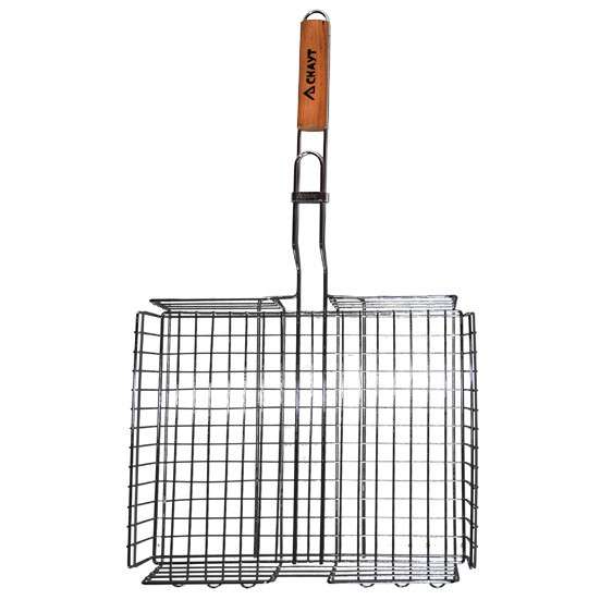 Решетка для гриля Скаут KM-0705 изготовлена из прочной хромированной стали. Главными преимуществами решетки для гриля являются разъемный механизм и высокий бортик, позволяющие обжаривать даже толстые куски мяса или рыбы, запекать курицу целиком. Съемная часть решетки Скаут KM-0705 переставляется на нужную высоту и прочно фиксируется. Металлическое кольцо надежно закрепляет обе плоскости решетки, плотно прижимая их друг к другу. Длинная ручка решетки Скаут KM-0705 имеет деревянную вставку, которая защищает руки от ожогов. На конце ручки имеется металлическая петелька для хранения решетки Скаут KM-0705 на весу.