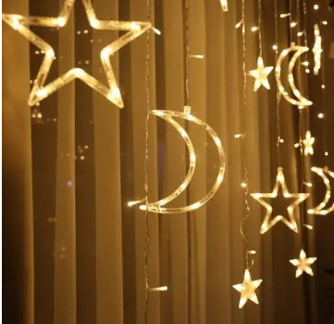 Светодиодная гирлянда штора Звезды и месяц Warm white CC01003