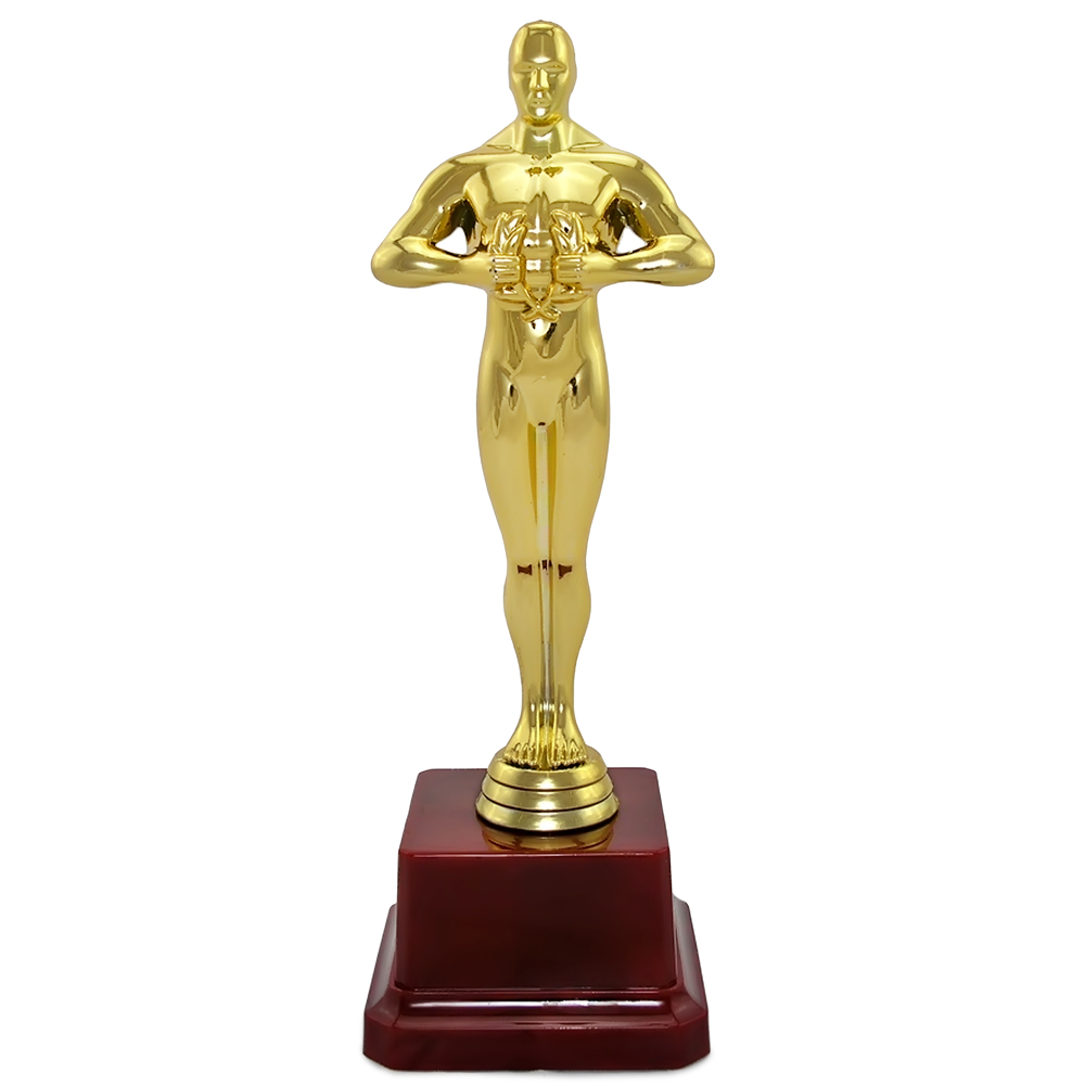 Статуэтка 57043 Оскар подарочный 23см превосходный и оригинальный подарок. Подарочная статуэтка выполнена в виде силуэта человека с лавровым венком в руках, из пластика с покрытием под золото на устойчивой подставке, такой сувенир станет отличным украшением интерьера и запоминающимся подарком. Статуэтка упаковывается в индивидуальный подарочный тубус из прозрачного пластика. Уникальная упаковка разработана компанией Карнавал Приколов. На статуэтках также возможно выполнить печать индивидуальной надписи с диаметром жетона 50мм. Цвета фона: синий, красный, зеленый. Также изготавливаем индивидуальную печать надписи на табличке для пьедестала Кубков и Статуэток размерами: 5.2х3.5см (цвет текста – черный, фон – золотой). На бордовом пьедестале статуэтки может присутствовать имитация мраморных разводов. Наш магазин предлагает товары оптом и для дропшипперов, вы можете оформить заказ на сайте Карнавал Приколов и задать любые интересующие вопросы менеджеру, заказав звонок на нашем сайте.