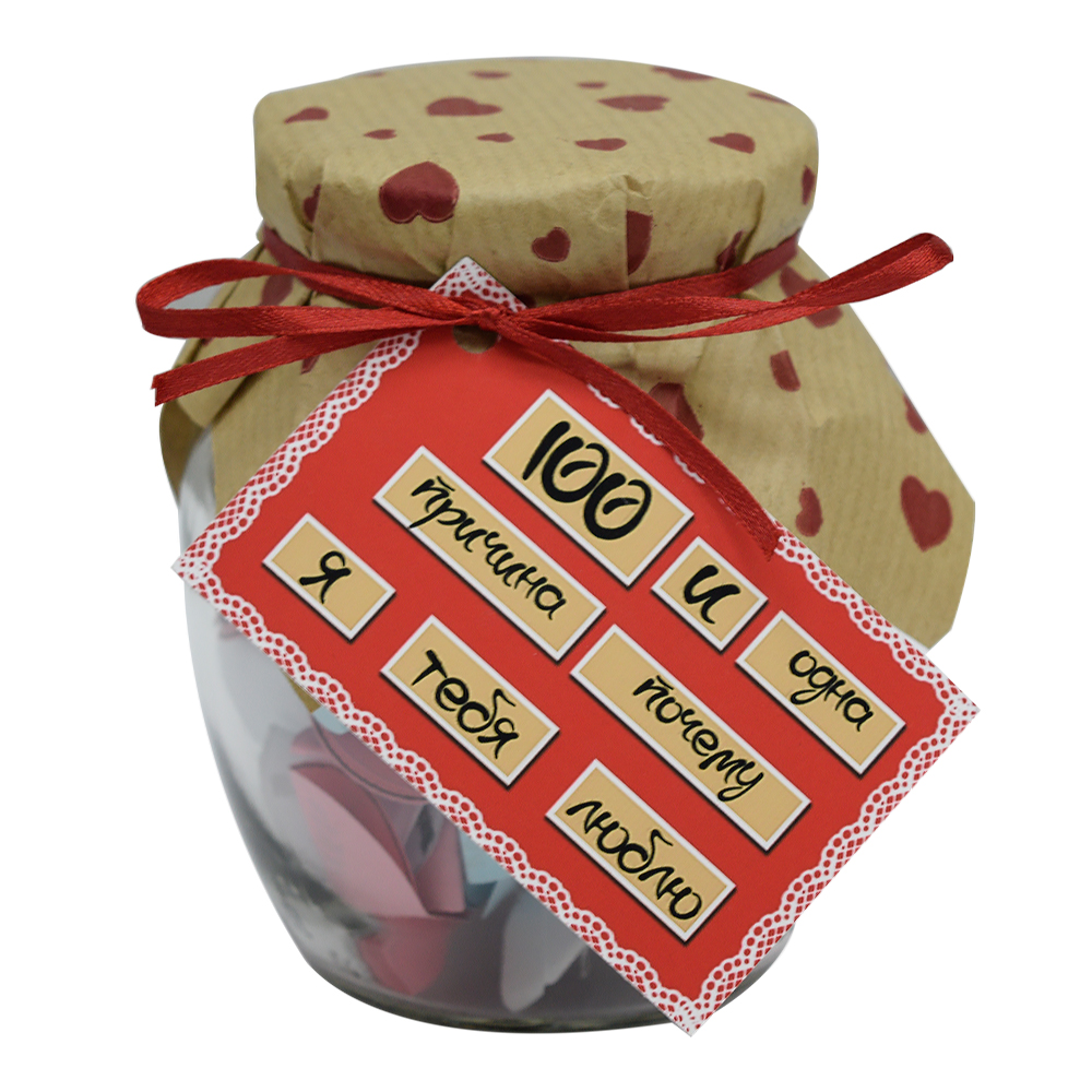 100 и Одна Причина, почему я тебя люблю (Девушке) — тщательно отобран нашими специалистами по ярким эмоциям. Баночка поможет Вам ежедневно радовать близкого Вам человека теплыми словами любви. Такой изумительный сюрприз можно подарить на День святого Валентина (День всех влюбленных) либо преподнести на Всемирный день поцелуя. Разворачивая фантики, произносите Единственная, Изумительная, Желанная, Дорогая… Разумеется, Вы можете постараться сделать такую банку своими руками, но это заберет у Вас невероятно много времени. Чтобы Вы не сидели несколько часов, вырезая фантики и придумывая, что же написать, мы сделали все за вас. Вы можете купить уже готовую увлекательную игру в подарок родным и близким, друзьям и знакомым. Интернет магазин Карнавал Приколов предлагает купить оптом интересные и оригинальные подарки по низким ценам, а также Вы можете оформить заказ на сайте и задать любые интересующие вопросы менеджеру, заказав звонок на нашем сайте.